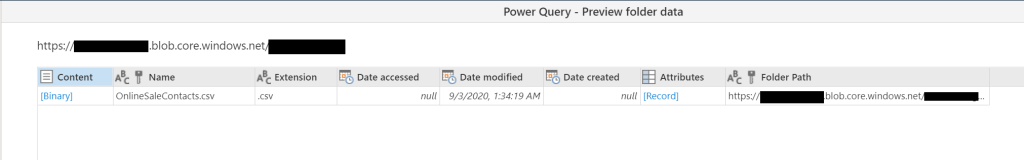 Step 5: Once connected, we’ll be able to see the list of data hosted on the storage. In this case, we have the online contacts stored in a CSV file.