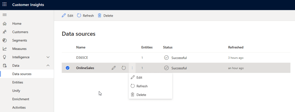 The first step is to create data connections to the sources, Customer Insights uses the Dynamics Power Query Connectors (so you may be familiar with it if you used Power BI).