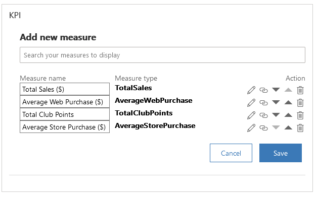 Follow Step 3 to 6 as mentioned above to add other controls, for Measures/KPIs select “Customer Insights Measures Control” and for Timelines select “Customer Insights Timeline Control”.