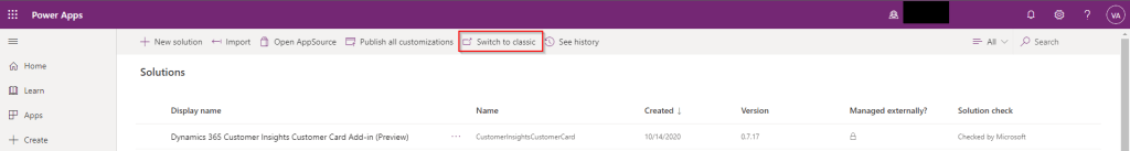 Step 3: Click on the “Switch to Classic” button to navigate to configure the solution.